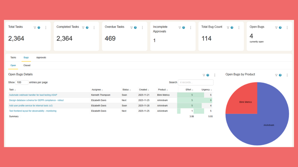 - Visual health indicators β charts that show project status at a glance