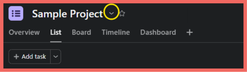 - Click the project dropdown (the small icon to the right of the project title)