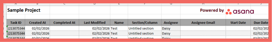 Your Asana Excel export won’t contain all of the details that are visible in Asana. Here’s what to expect: